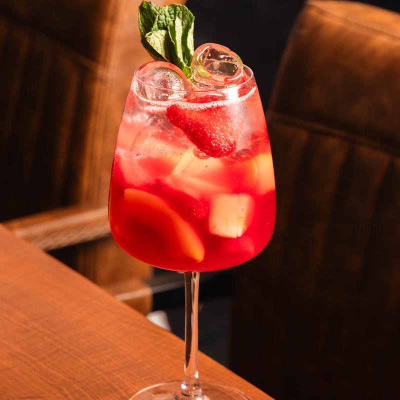 Pinot Grigio Ramato, Hendricks Grand Cabernet Gin, passion fruit, mango juice, Prosecco & fruit.